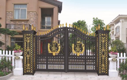 現如今的鋁藝別墅大門的外表采用了金屬油漆進行保護,一般運用的油漆與成效大致有三種:1.硝基漆的功能:快干、硬度高、耐磨、耐水、能夠打磨拋光、易修復、不耐堿、耐熱、耐寒、涂飾工藝復雜、施工勞動強度大、用途:用于底漆、面漆。2、聚酯漆的功能:色彩淺、通明、漆膜豐滿亮光、硬度高、耐腐、耐潮、耐溶劑、耐磨、保光、保色性良好、并且有一定的耐熱性和耐溫變行。3、丙烯酸樹脂漆功能:色淺、耐熱功能好、干燥快、耐腐蝕、漆膜亮光、堅硬、附著力好。, 1、別墅大門的生產工藝過程。, 要按期除掉鐵藝陽臺欄桿表層的灰塵,選用純棉織品的抹布,蘸上性質溫順的清潔劑,靜靜擦拭。關于凹陷處的灰塵,可用細軟羊毛刷沿著縫隙刷掉。將欄桿放置在其他硬物不常遇到,盡量防止外力的磕碰撞傷,更不能用材質堅硬的物品撞擊敲打,這樣會使漆層起殼和鍍鉻層零落。, 四、地面中間突出物在關閉時會碰到上下擋。