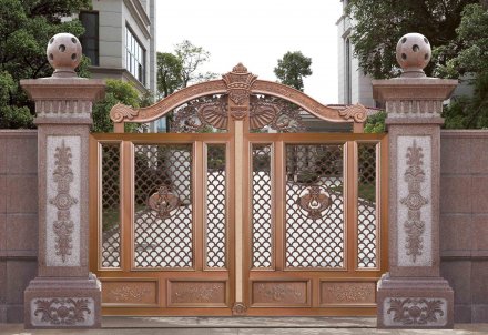 可拆裝,無(wú)焊接制作安裝簡(jiǎn)便快捷,采用專利的連接件,大大提高安裝效率。運(yùn)輸便捷,一定程度上節(jié)省了運(yùn)費(fèi)。, 一、門框放入門洞時(shí)必須上下平行左右垂直,如門洞比門框大一公分以上時(shí),必須用石塊或木塊將門框的膨脹螺絲墊實(shí),在門框左上右下先打膨脹螺絲,不要擰緊,羅馬柱的門應(yīng)先裝羅馬柱到門框上,然后再放入門洞。, 為了避免金屬生銹,能夠按期用棉布蘸上少量的防銹油或縫紉機(jī)油擦拭表層局部,堅(jiān)持鐵藝欄桿光亮如新。, 高級(jí)鐵藝制作的表面裝飾效果漆色彩豐富,多采用進(jìn)口漆手繪,既古樸典雅,又時(shí)尚流行.最經(jīng)典的表面裝飾效果漆有青古銅色、紅古銅色、古銅金、黑色、銅金邊、白色金邊等。, 1、造價(jià)比較實(shí)會(huì)。